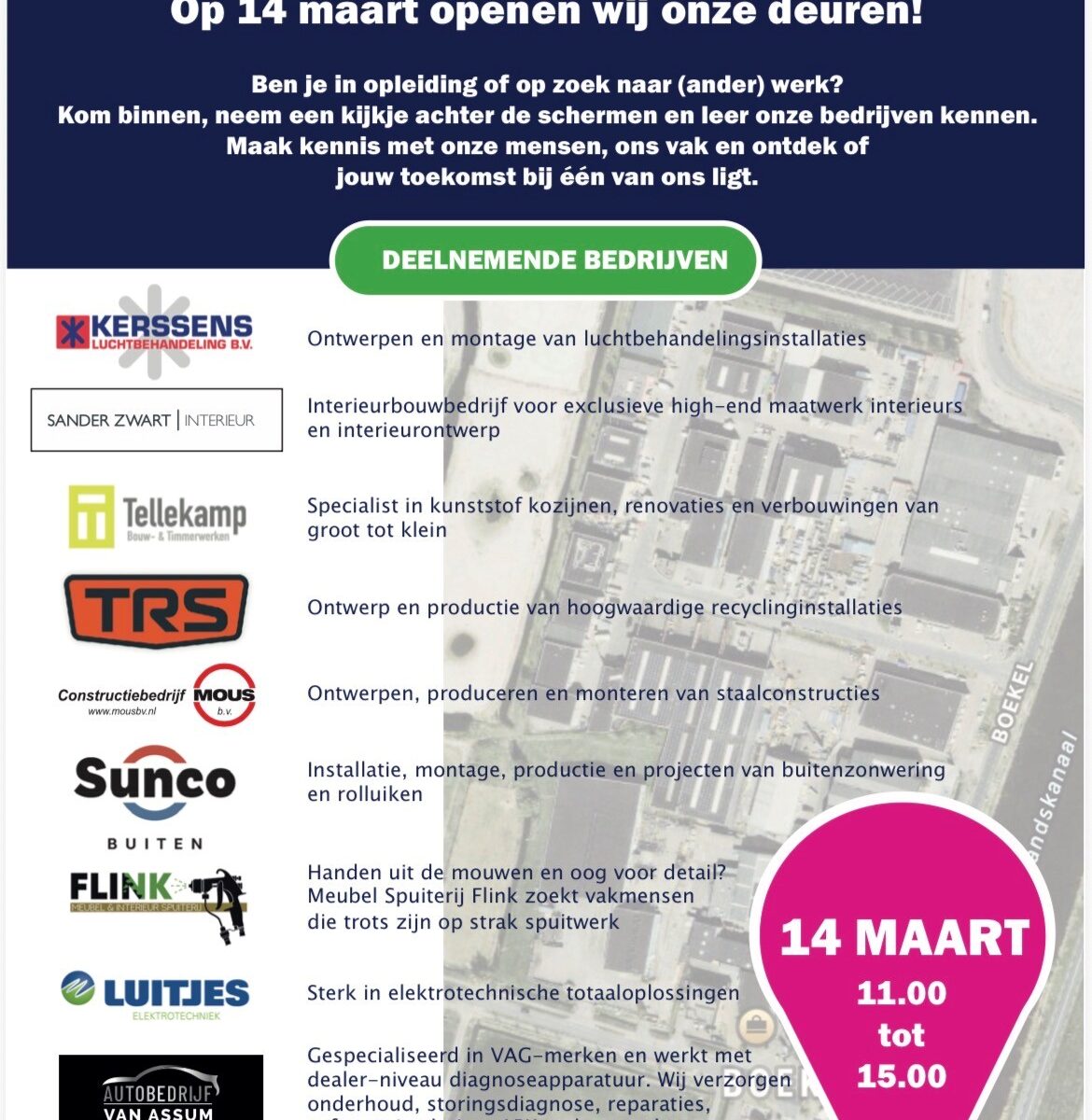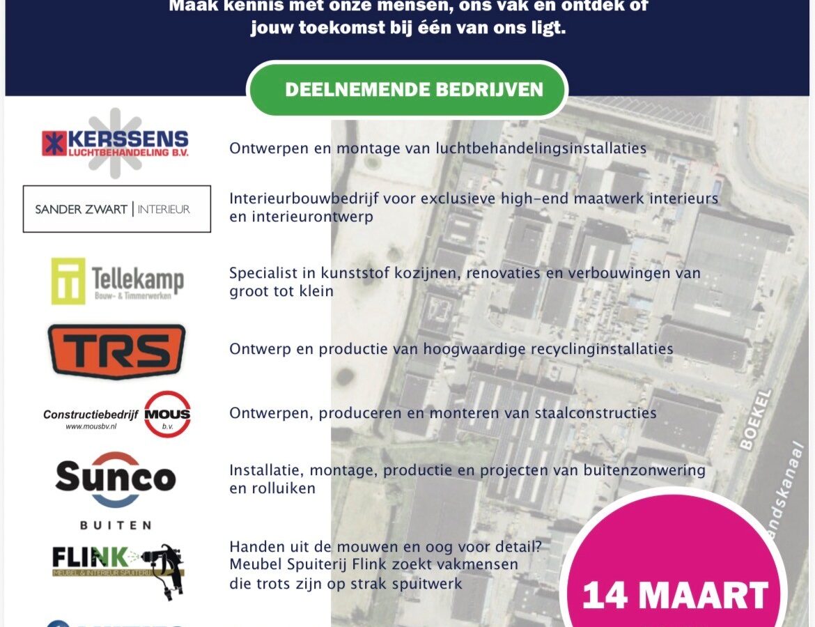 Tijdens de Kom Binnen Bij Bedrijven Dagen laten wij geïnteresseerden, werkzoekende en studenten/leerlingen graag kennismaken met ons bedrijf.